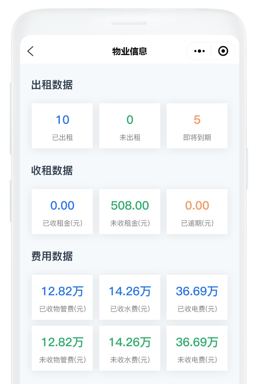 物業信息 水電抄表 繳費信息統計 房源信息